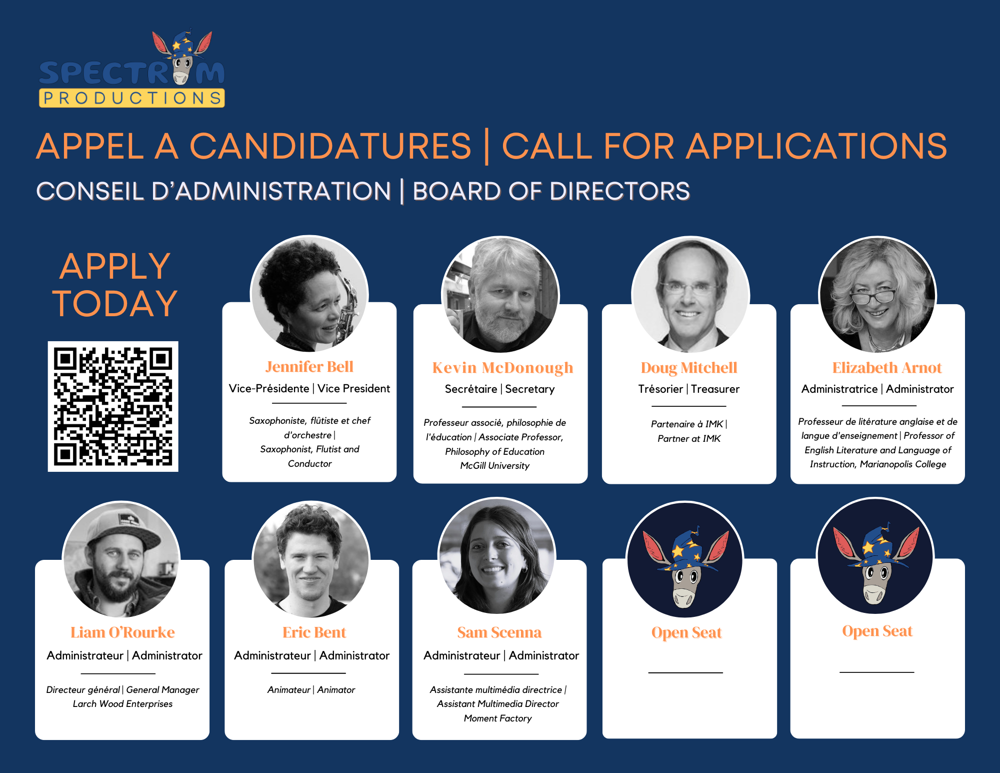 Spectrum Productions is seeking passionate, community-minded leaders to fill two spaces on our Board of Directors! If you care about creativity, inclusion, and supporting autistic and neurodiverse artists, we invite you to apply and help shape the future of our growing organization.