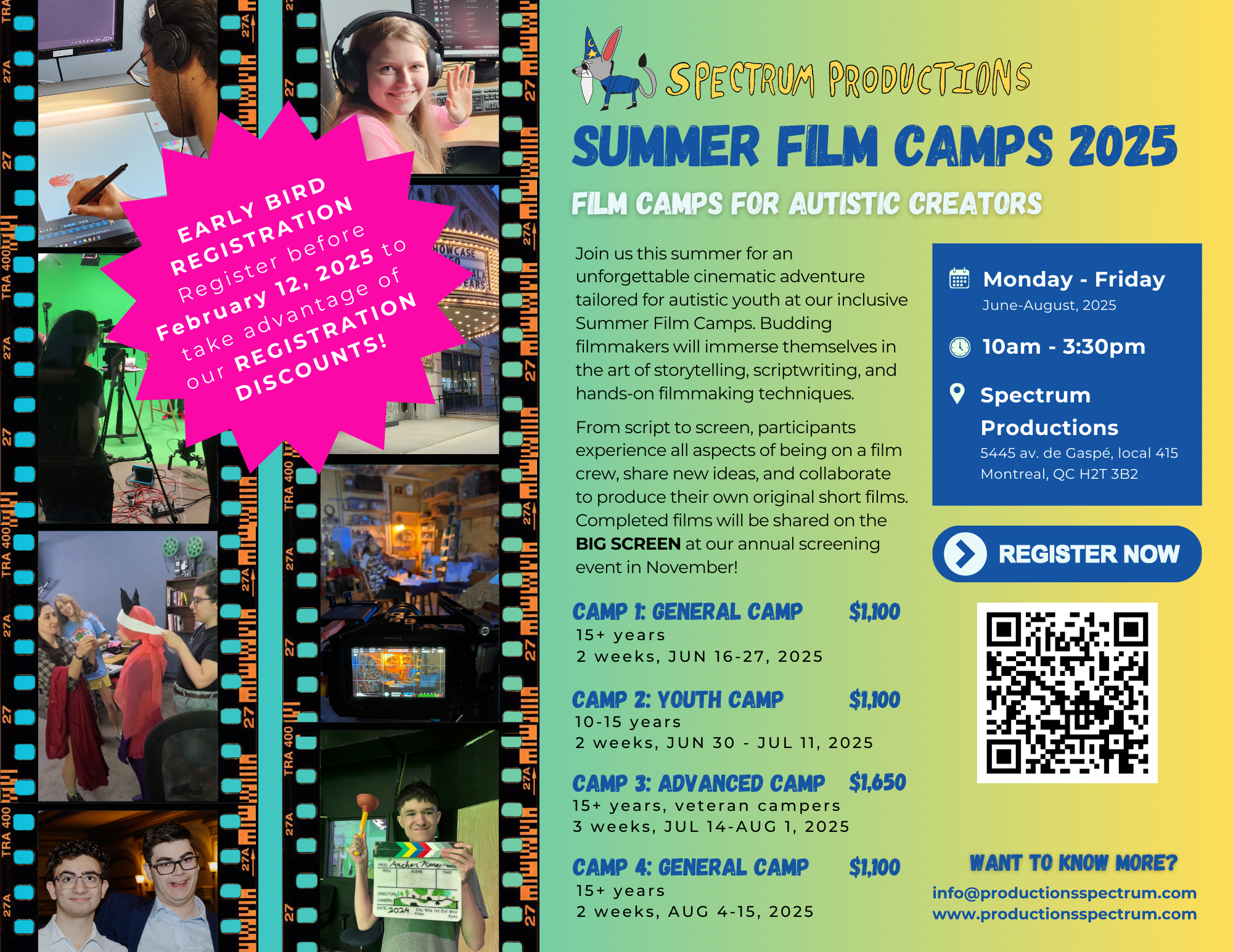 Our Summer Film Camps offer autistic and neuro-divergent creators a collaborative, hands-on experience in film and animation. No experience required, just a willingness to make fun group projects! We can hardly wait to work together, brainstorm ideas, jam out stories, film cool shots, and edit sweet cuts.