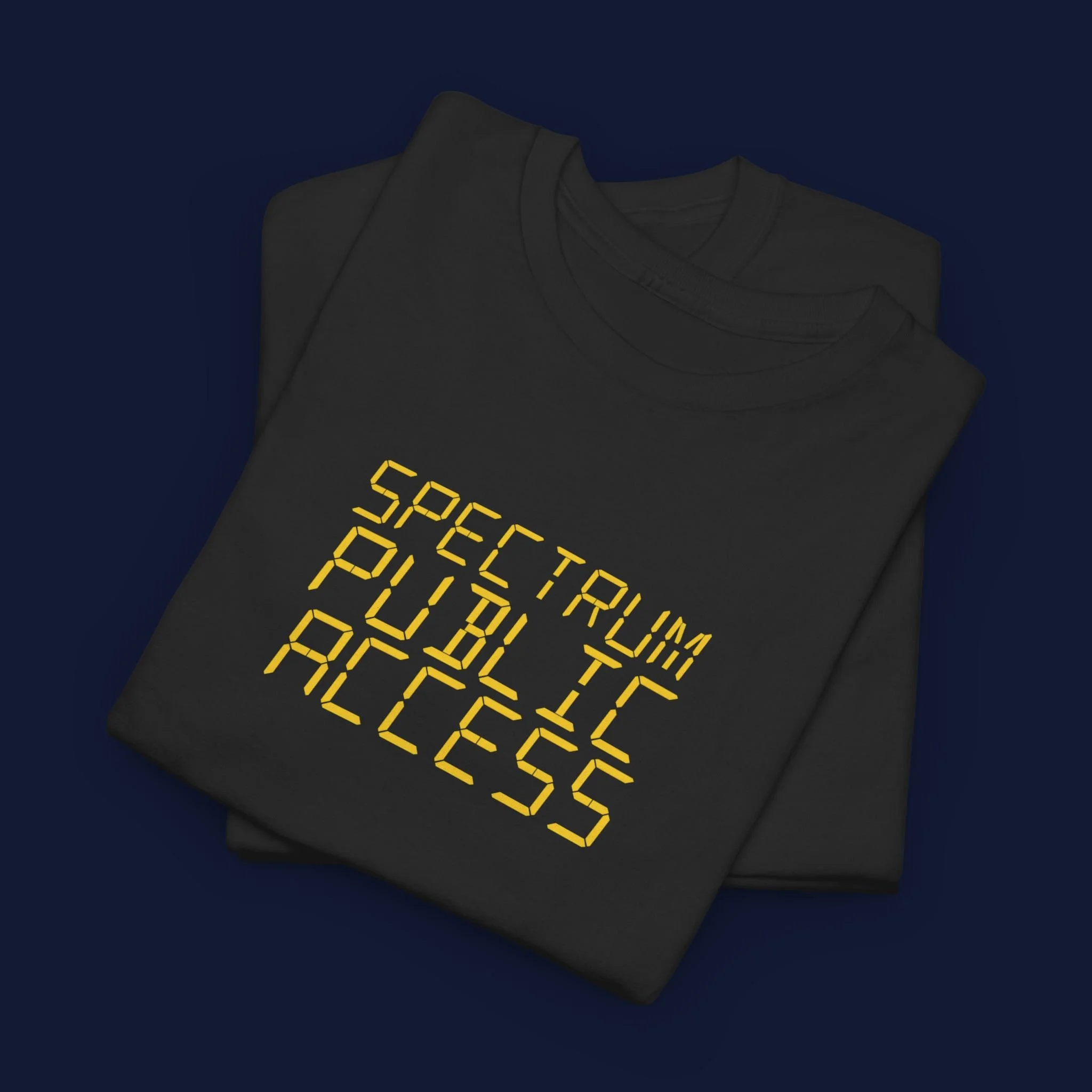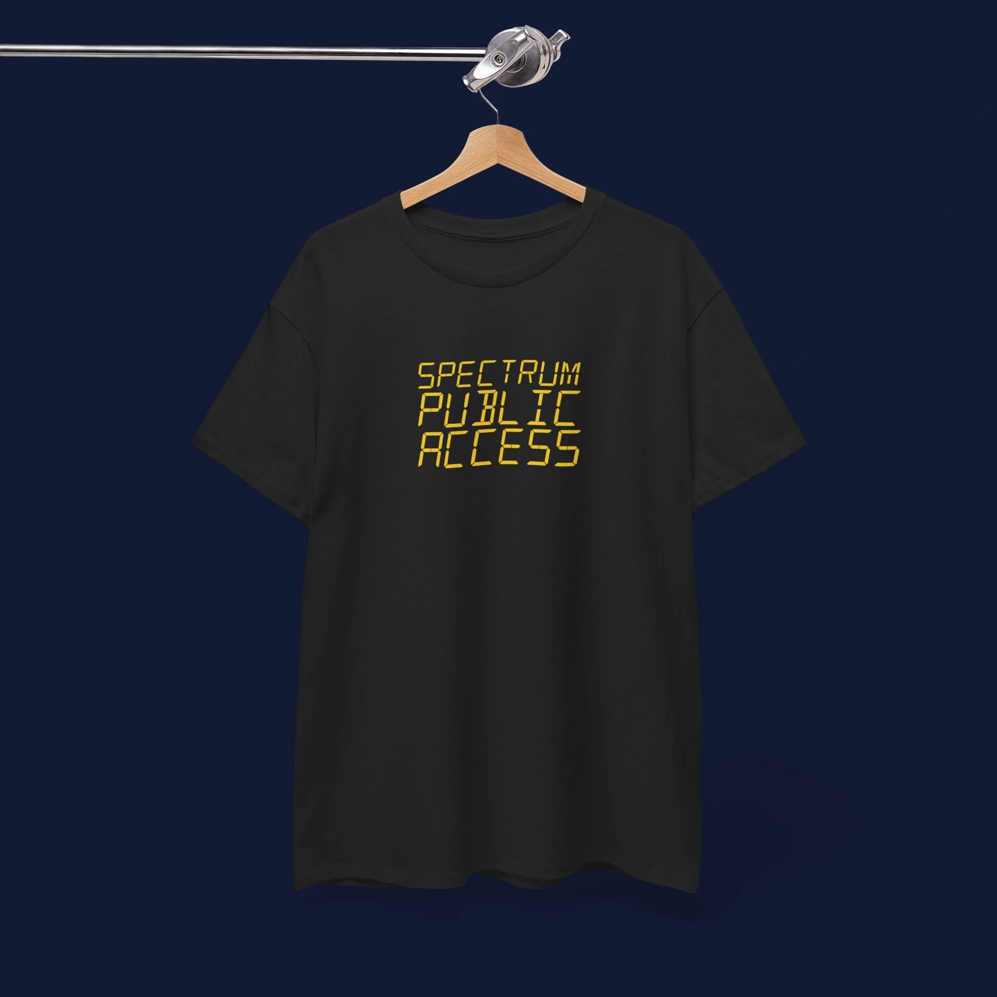 Spectrum Studios Store › Spectrum Public Access Tee Image 1 of 3 Image 2 of 3 Image 3 of 3 Spectrum Public Access Tee from $27.00 Help support the Spectrum Public Access launch with this classic Tee. Perfect for being on set or lounging at home. Color: Select Color Black Size: Select Size S M L XL 2XL 3XL 4XL 5XL Quantity: Purchase Added! Help support the Spectrum Public Access launch with this classic Tee. Perfect for being on set or lounging at home.